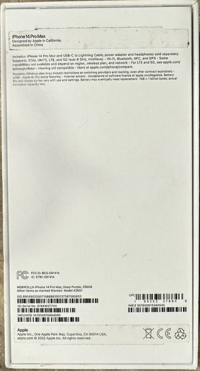 Apple iPhone 14 Pro Max 256 GB in Deep Purple UNLOCKED 8W37