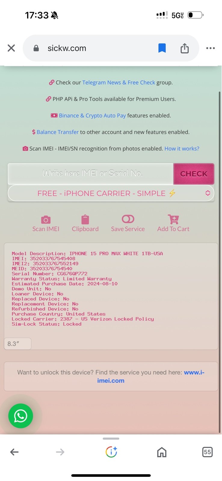 iPhone 15 Pro Max 256gb Unlocked 8B76